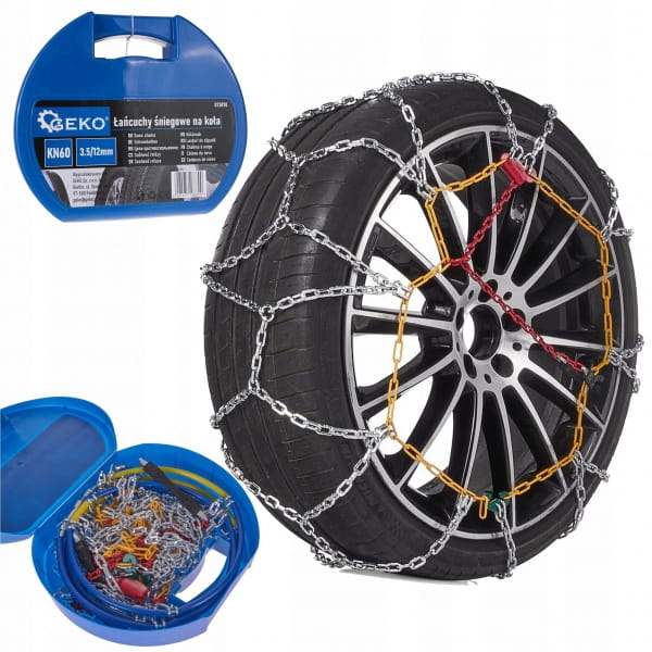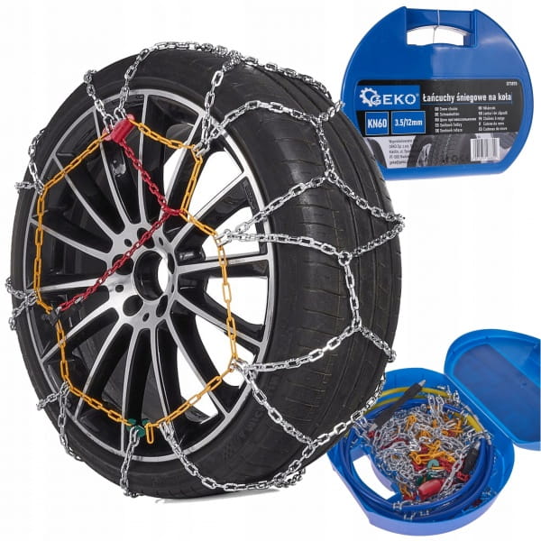 Solidne łańcuchy śniegowe na koła do samochodu marki Geko