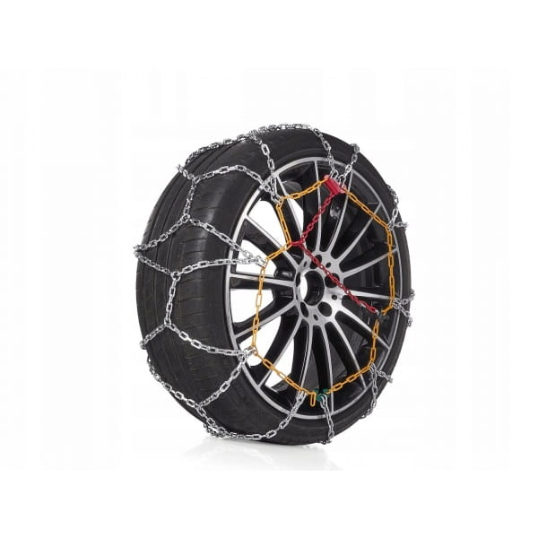Łańcuchy śniegowe charakteryzują się ogniwami o przekroju kwadratu, co znacząco poprawia przyczepność na oblodzonych i zaśnieżonych nawierzchniach. Kwadratowy kształt ogniw zwiększa powierzchnię kontaktu z podłożem, co przekłada się na lepszą kontrolę nad pojazdem i bezpieczeństwo podczas jazdy w ekstremalnych warunkach.