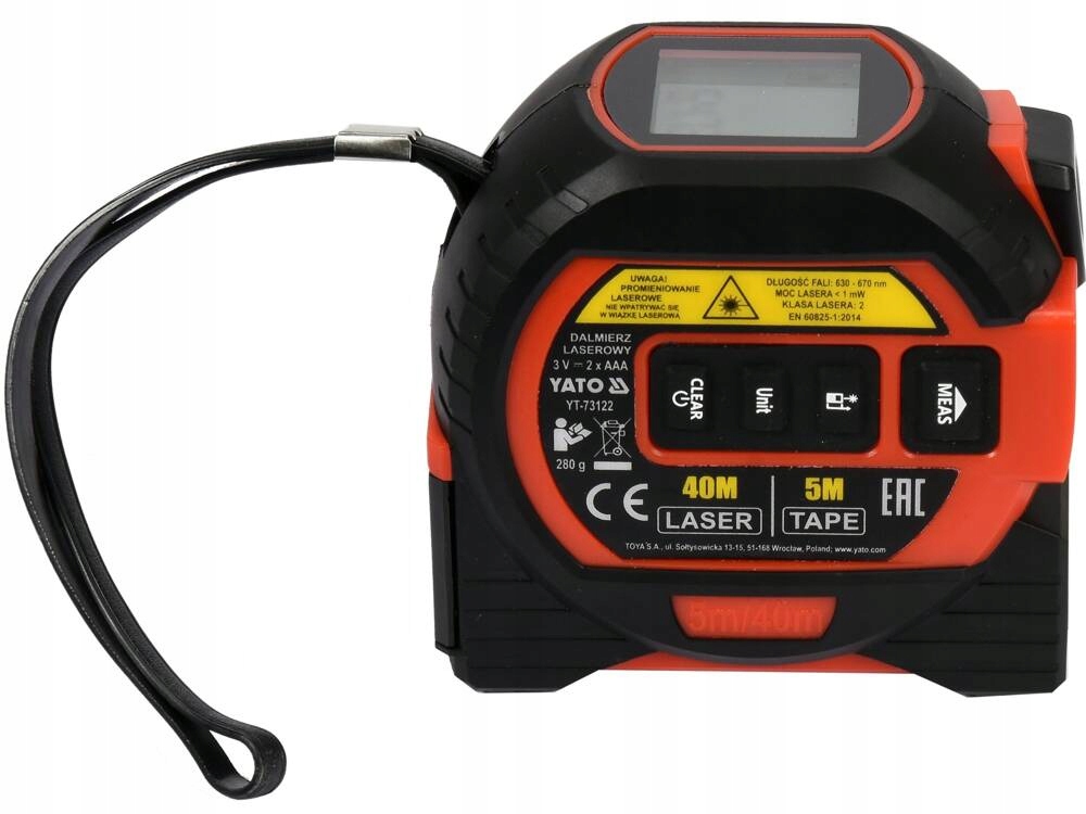 Dalmierz laserowy 40 m z miarą zwijaną 5 m i laserem krzyżowym