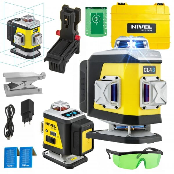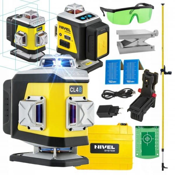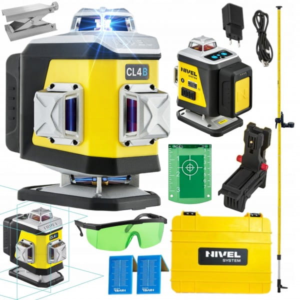NIVEL SYSTEM LASER KRZYŻOWY 4D NIEBIESKI CL4B WALIZKA AKCESORIA TYCZKA LP36