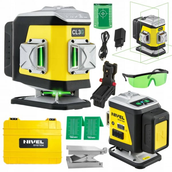 NIVEL SYSTEM LASER KRZYŻOWY 3D ZIELONY BLUETOOTH AKCESORIA WALIZKA CL3G
