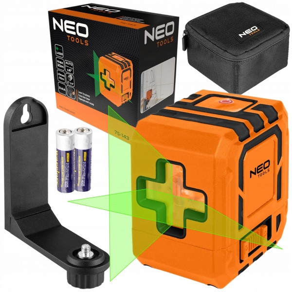NEO LASER KRZYŻOWY SAMOPOZIOMUJACY 30M ETUI UCHWYT POZIOMICA ZIELONY 75-143