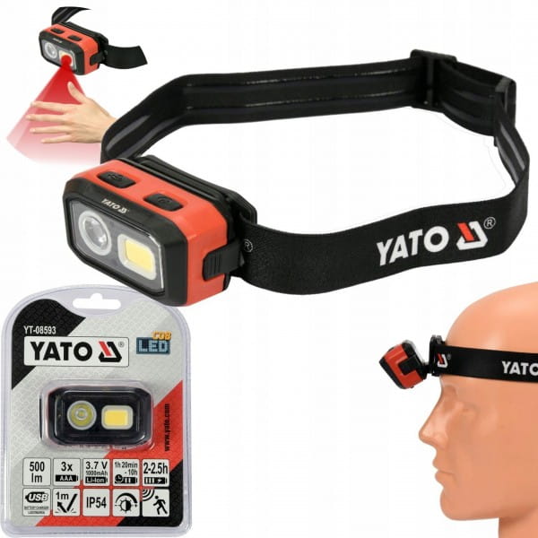 Bardzo mocna i funkcjonalna latarka czołowa Yato z płynnie regulowanym światłem do 500lm.