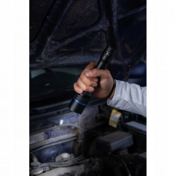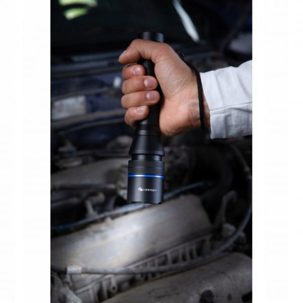 Funkcja zoom umożliwia regulowanie wielkości wiązki światła, dzięki czemu płynnie można zmienić świecenie szerokie w punktowe, szczególnie przydane podczas oświetlania mocno oddalonych obiektów.