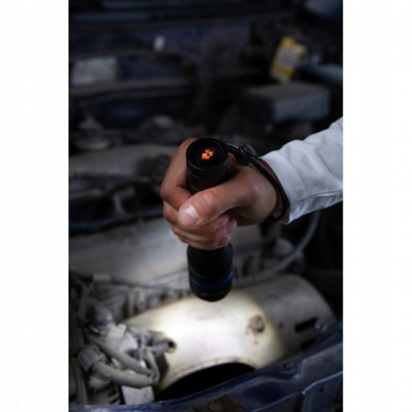 Lekka, wytrzymała, aluminiowa z wydajnymi diodami LED. Wodoodporna obudowa o klasie IPX7 chroni przed skutkami zanurzenia w wodzie na głębokość do 1 metra przez 30 minut.
