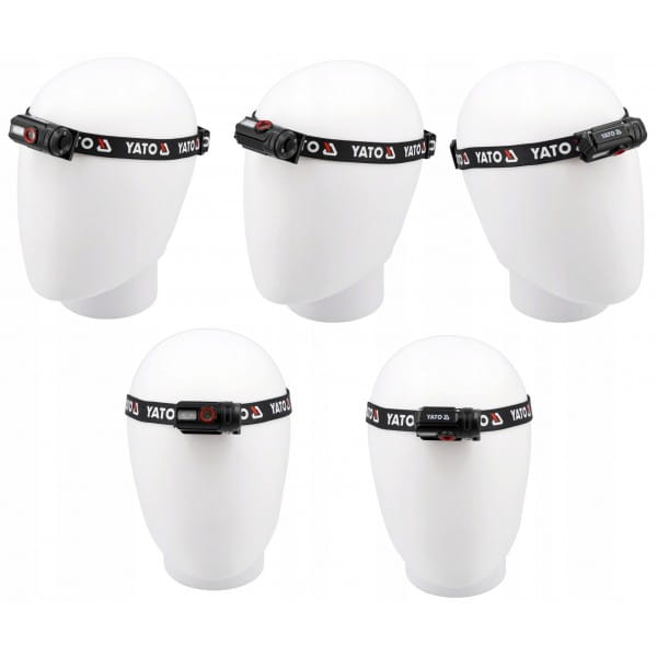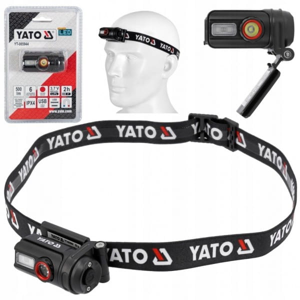 Akumulatorowa latarka czołowa YATO ze światłem czerwonym i białym oraz sześcioma trybami pracy, które umożliwiają dostosowanie oświetlenia do różnych warunków i wykonywanych czynności.