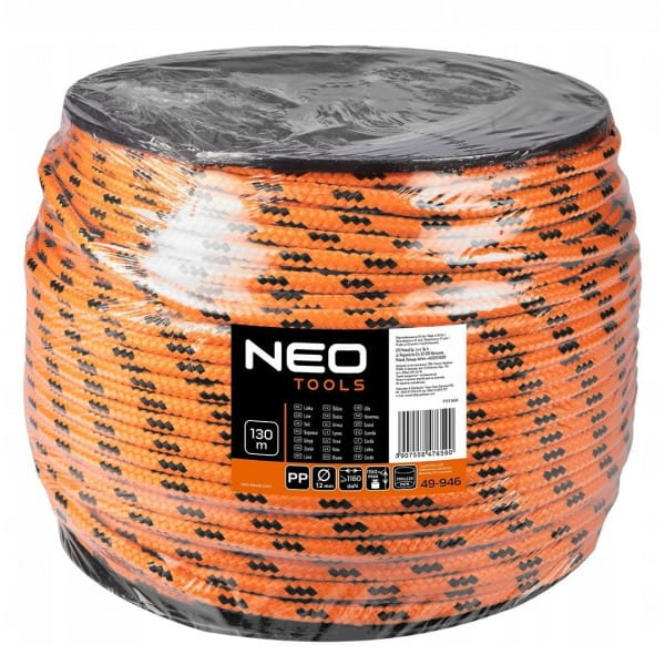 Linka pleciona polipropylenowa fi 12, 130 m 49-946 NEO TOOLS to linka o średnicy 12 mm i długości 130 metrów będąca wszechstronnym i niezawodnym akcesorium, które znajdzie zastosowanie w różnych dziedzinach. Wykonana z wysokiej jakości polipropylenu z poliestrowym rdzeniem BCF/PES, cechuje się wytrzymałością nici na poziomie 1160 + / - 5% (wg PN-EN ISO 2307), zapewniając trwałość i niezawodność.