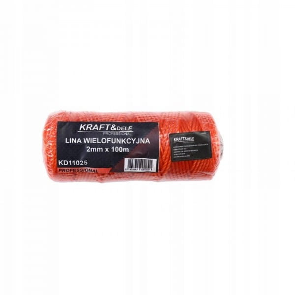 KRAFT&DELE LINA WIELOFUNKCYJNA 2MM X 100M POMARAŃCZOWA POLIPROPYLEN KD11025