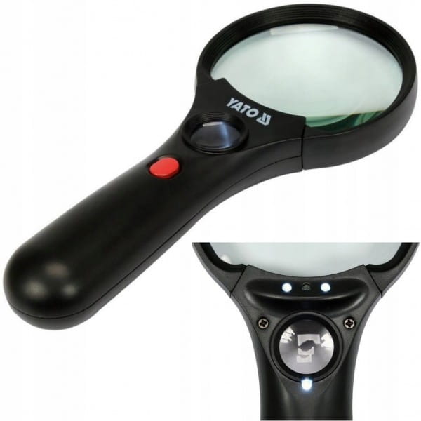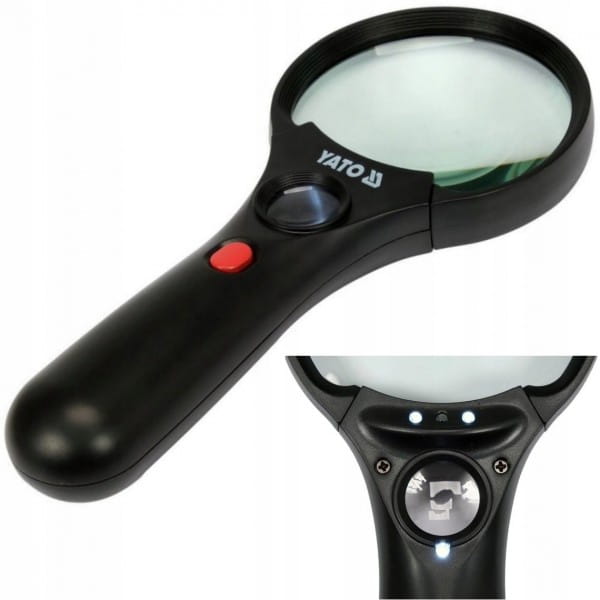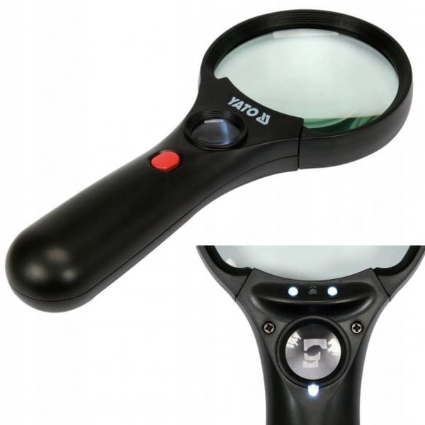 YATO LUPA DWIE SOCZEWKI 3X/45X PODŚWIETLENIE LED UV LED NA BATERIE YT-73845