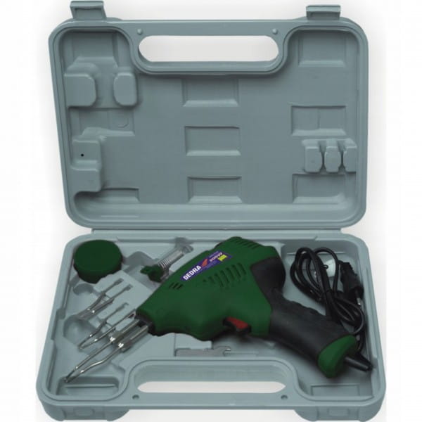 Lutownica transformatorowa DED7538, to urządzenie za pomocą którego możemy łączyć przewody, kable czy wlutowywać elementy scalone w układach elektronicznych za pomocą spoiwa lutowniczego. Narzędzie znajdzie swoje zastosowanie zarówno w przydomowym garażu jak i wykorzystywane będzie przez profesjonalnych elektroników czy elektryków. Lutownica ma wbudowane dodatkowe oświetlenie, pozwalające na precyzyjną i dokładną pracę w miejscach mało doświetlonych i trudno dostępnych.