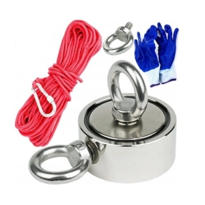 MAGNES NEODYMOWY UCHWYT MAGNETYCZNY 180KG DO POSZUKIWAŃ + LINA + RĘKAWICZKI