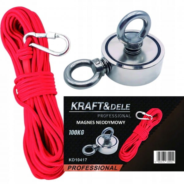 MAGNES NEODYMOWY UCHWYT MAGNETYCZNY 100KG DO POSZUKIWAŃ + LINA KD10417