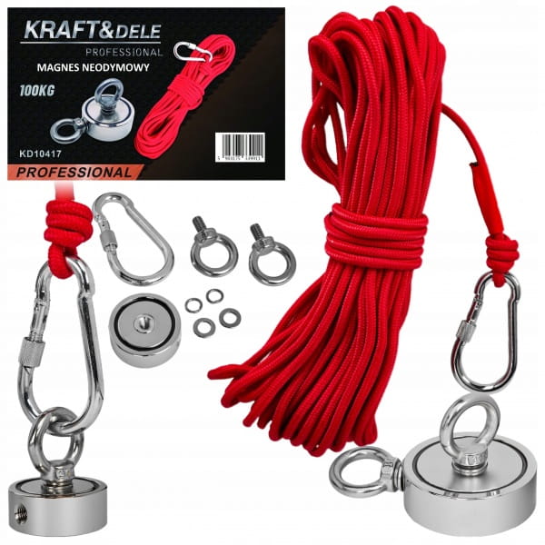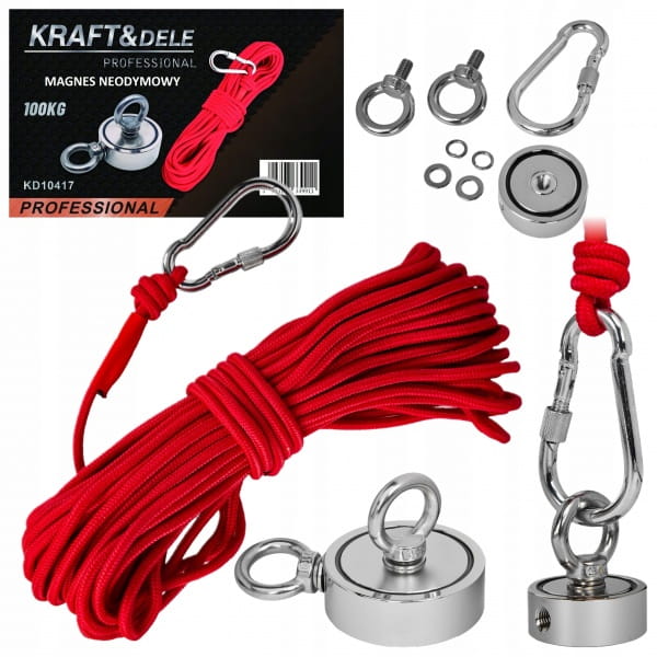 KRAFT MAGNES NEODYMOWY UCHWYT MAGNETYCZNY 100KG DO POSZUKIWAŃ +LINA KD10417