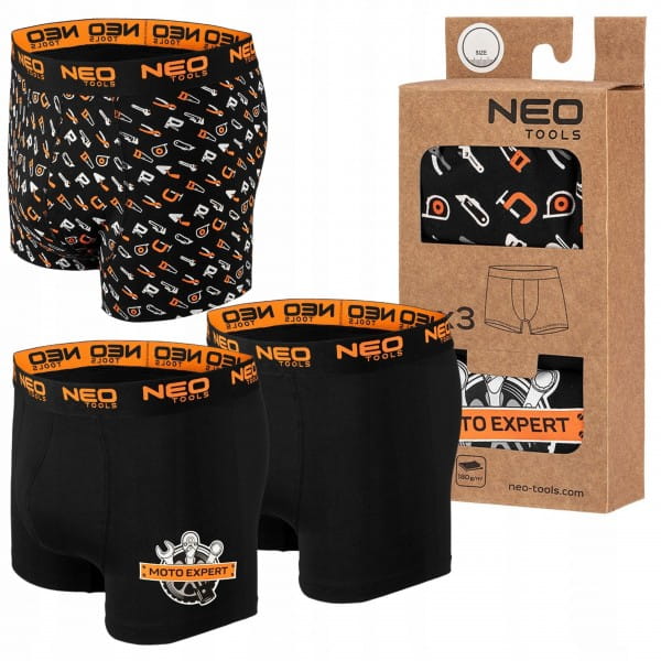 Zestaw 3 sztuk bokserek NEO TOOLS pakowany jest w estetyczne pudełko kartonowe z okienkiem, co sprawia, że doskonale nadają się na prezent. Dostępne w wielu wersjach rozmiarowych. Informacje dotyczące składu i przepisu konserwacji znajdują się na metce umieszczonej od wewnętrznej strony. Bokserki posiadają oryginalny wzór i design. Są idealnym wyborem dla mężczyzn, którzy cenią sobie jakość i wygodę w codziennym użytkowaniu.