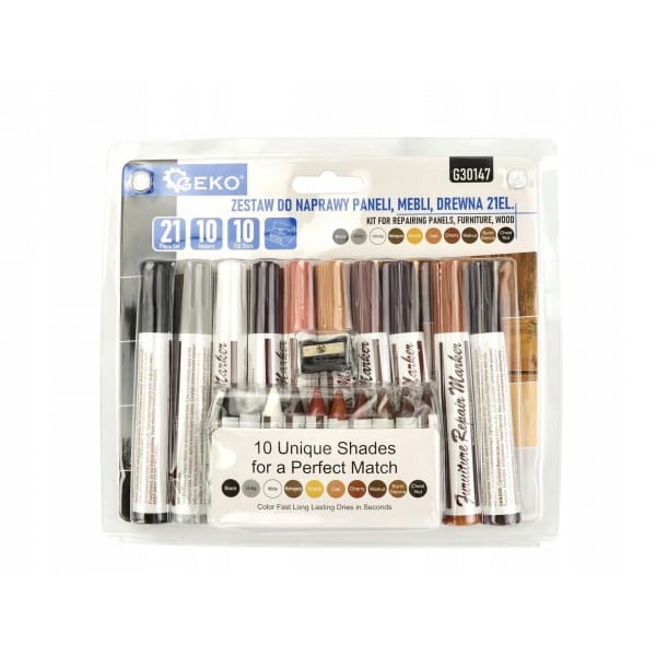 GEKO ZESTAW DO NAPRAWY PANELI, MEBLI, DREWNA, SKÓRY 21 ELEMENTÓW G30148