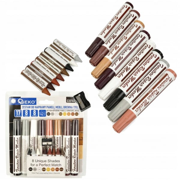 Zestaw pozwala w estetyczny i tani sposób zamaskować pęknięcia, wyszczerbienia itp. W skład zestawu wchodzi 8 kolorów pisaków oraz 8 kredek woskowych w tych samych kolorach. Naprawa uszkodzonej powierzchni odbywa się dwuetapowo, w pierwszej kolejności należy wypełnić ubytek półtwardą kredką woskową w odpowiednio dobrany kolorze, a następnie pokrycie tego miejsca olejowymi pisakami tworząc strukturę przypominającą drewno.