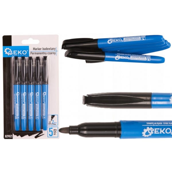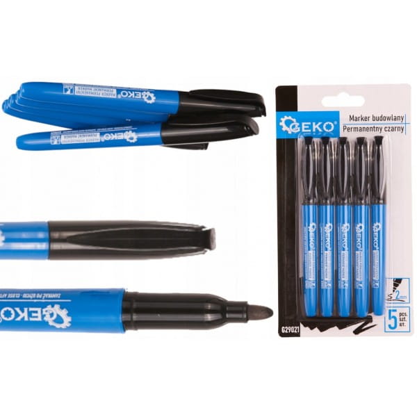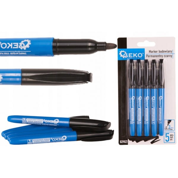 GEKO MARKER BUDOWLANY PERMANENTNY CZARNY CIENKI – ZESTAW 5 SZTUK G29021