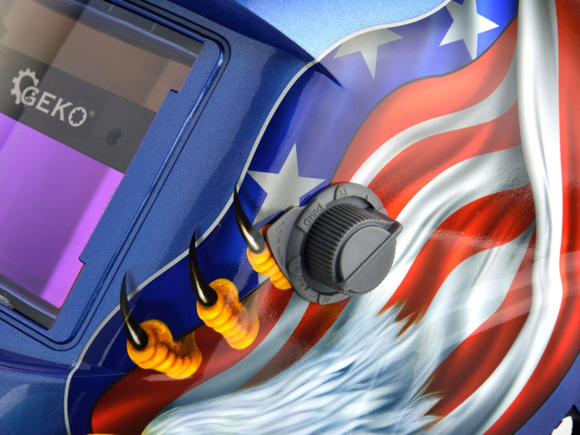 Przyłbica samościemniająca zaprojektowana została w celu ochrony oczu i twarzy podczas spawania przed iskrzeniem, odpryskami oraz szkodliwym promieniowaniem UV i IR.