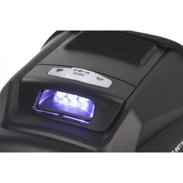 Przyłbica jest wyposażona w 4 foto-sensory które umieszczone są 2 w górnej części szybki oraz 2 w dolnej części.
