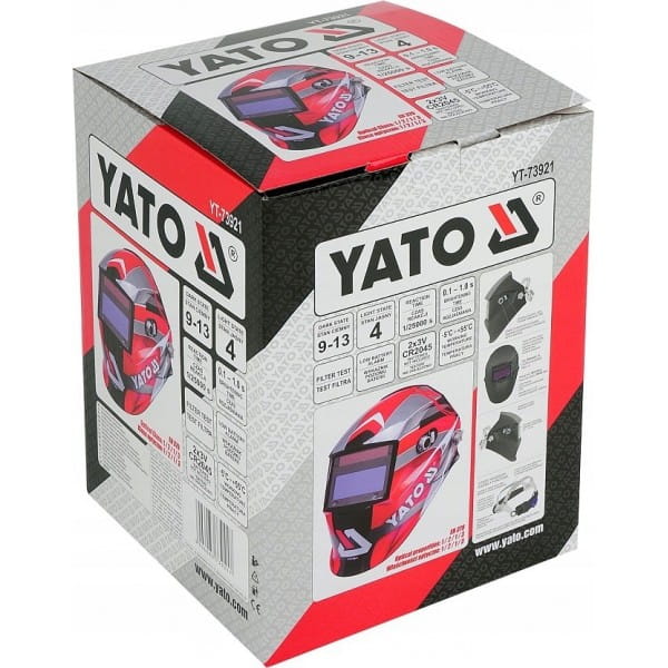 - Zawartość zestawu: przyłbica spawalnicza, szybka ochronna x5 (YT-73924)