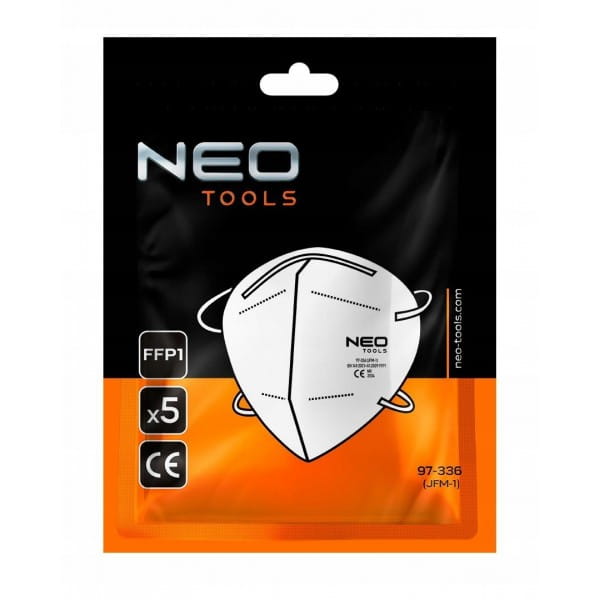 Półmaska składana, 97-336, NEO zapewnia ochronę klasy FFP1 górnych dróg oddechowych przed szkodliwymi pyłami. Kształt produktu jest wypukły, aby zapewnić dobre dopasowanie do gogli ochronnych, a także ograniczyć ich zaparowanie. Maseczka została wykonana z 5 warstw, które chronią użytkownika, a także zmniejszają szansę na rozerwanie produktu. Produkt potwierdzony jest certyfikatem CE na zgodność z normą EN149:2001+A1:2009.