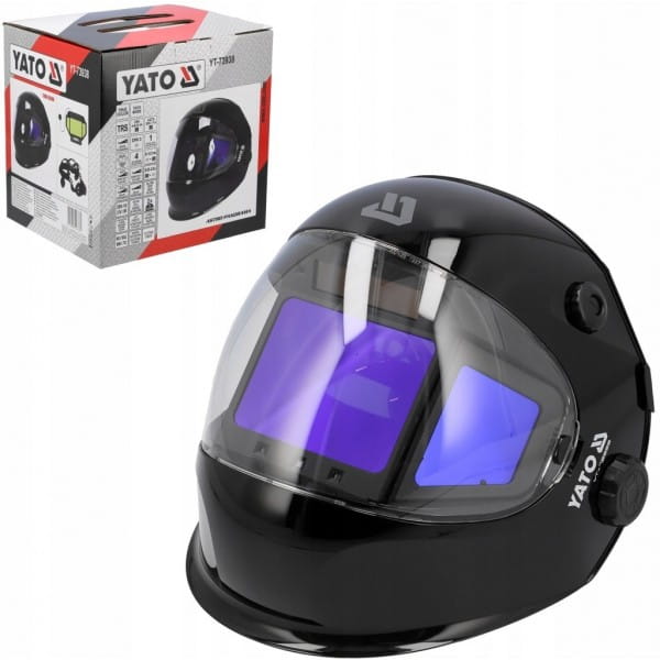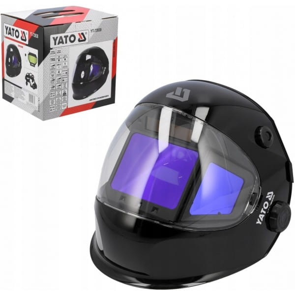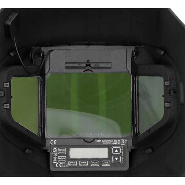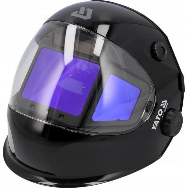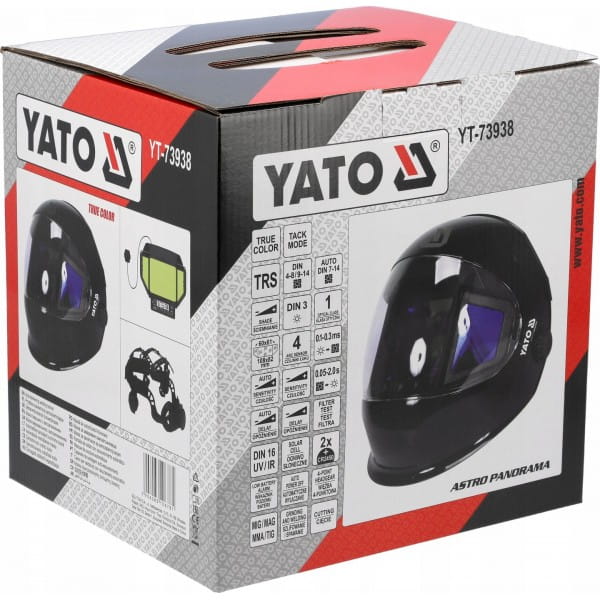 Przyłbica spawalnicza YATO ASTRO DIGITAL ze sterowanym cyfrowo szerokokątnym trójelementowym filtrem samościemniającym typu true color.