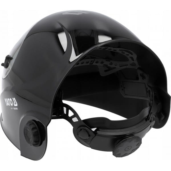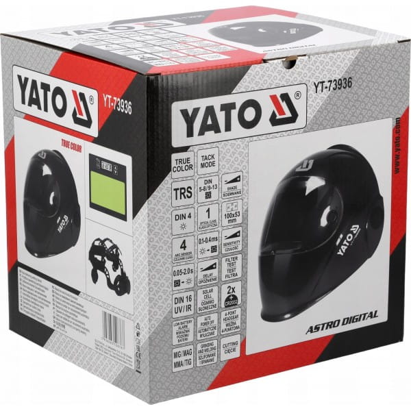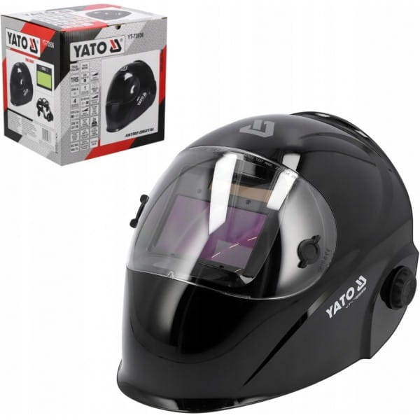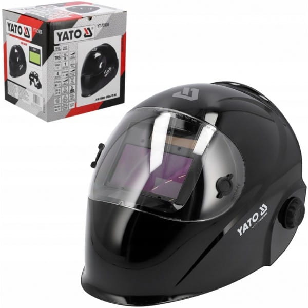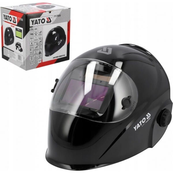Przyłbica spawalnicza YATO ze sterowanym cyfrowo filtrem samościemniającym typu true color.
