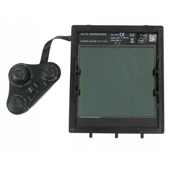 Automatyczna przyłbica wyposażona jest w filtr spawalniczy, który zmienia stopień zaciemnienia.