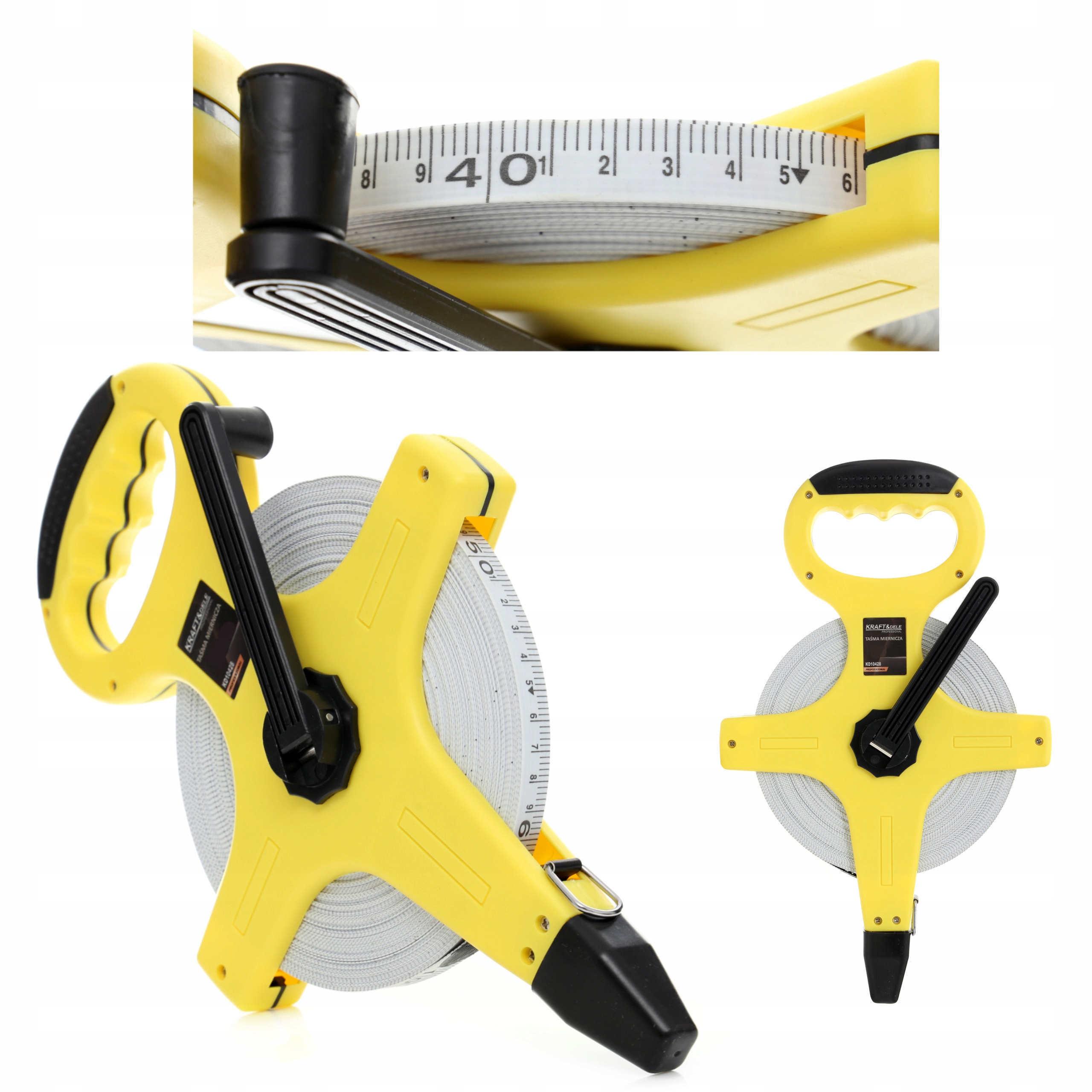Profesjonalna, zwijana miara geodezyjna Kraft&Dele o długości 30m. Solidna, ergonomiczna obudowa z rękojeścią wykończona została gumową powłoką antypoślizgową, zapewniającą pewny i wygodny chwyt w każdych warunkach. Odporna na warunki atmosferyczne, przystosowana do wbijania w ziemię końcówka oraz linka przymocowana do końcówki taśmy ułatwiają samodzielne wykonywanie pomiarów. Sprawne i wygodne posługiwanie się narzędziem ułatwiają rozwijająca się szpula, korbka do zwijania oraz anatomicznie ukształtowany uchwyt.