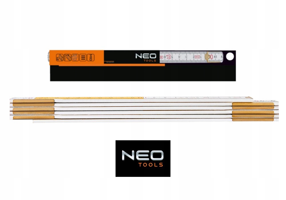 • NEO TOOL MIARA SKŁADANA DREWNIANA 2M BIAŁOŻÓŁTA OBUSTRONNA PODZIAŁKA 74-020