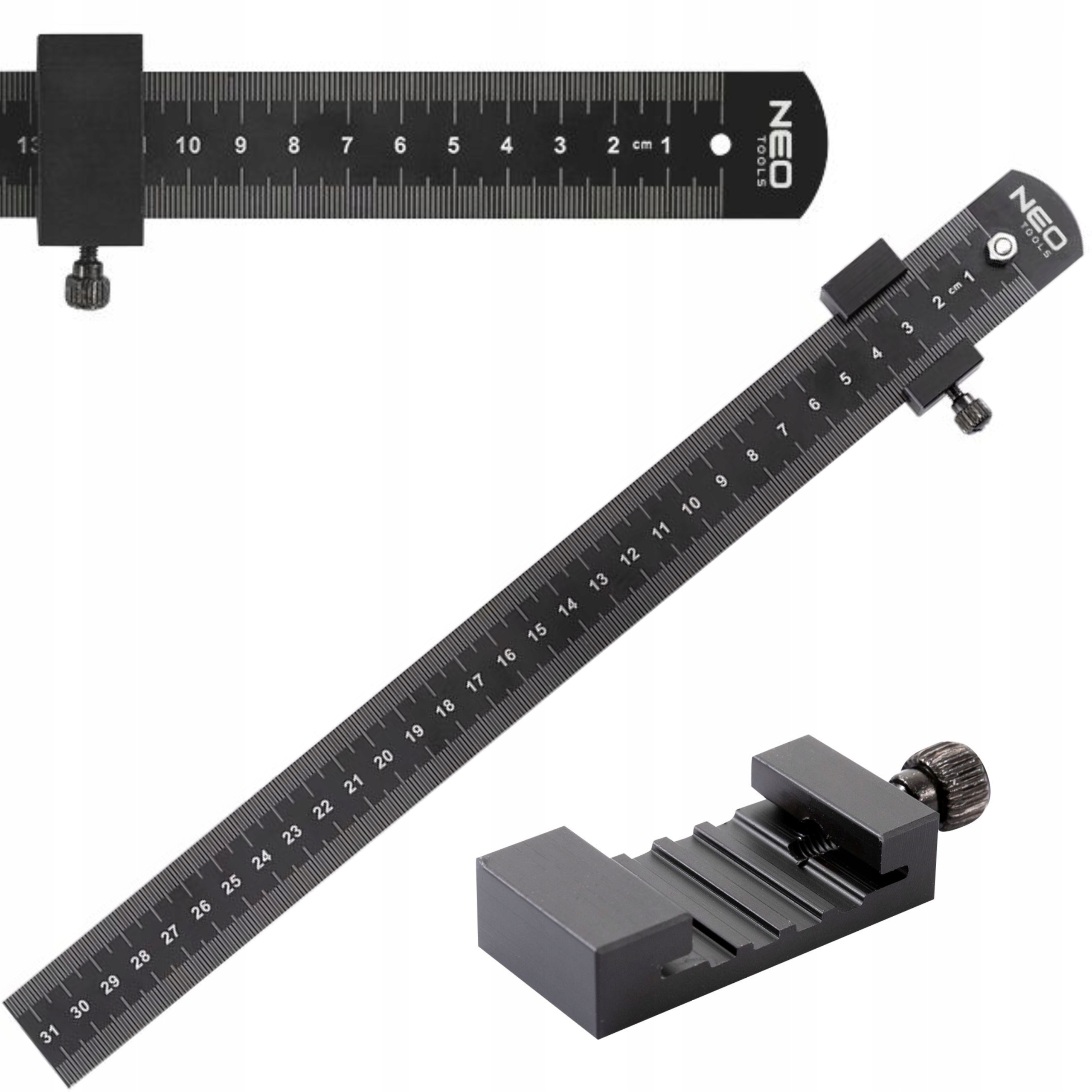 • NEO PRZYMIAR LINIJKA MIARKA OGRANICZNIK TRASERSKA STAL 30CM SKALA 72-200