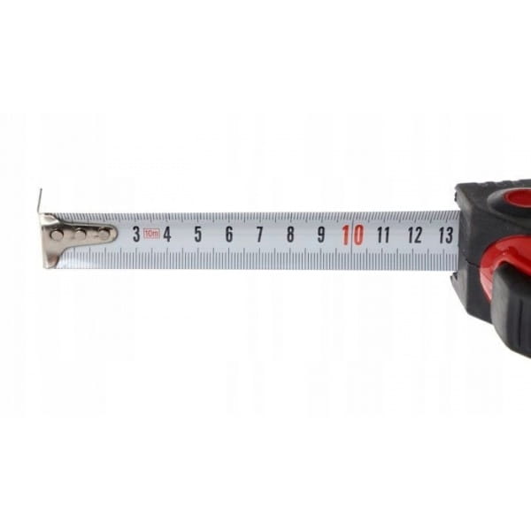 Miara wykończona antpoślizgową, gumową powłoką, zapewniającą dobry chwyt w każdych warunkach pracy. Taśma wykonana ze stali.