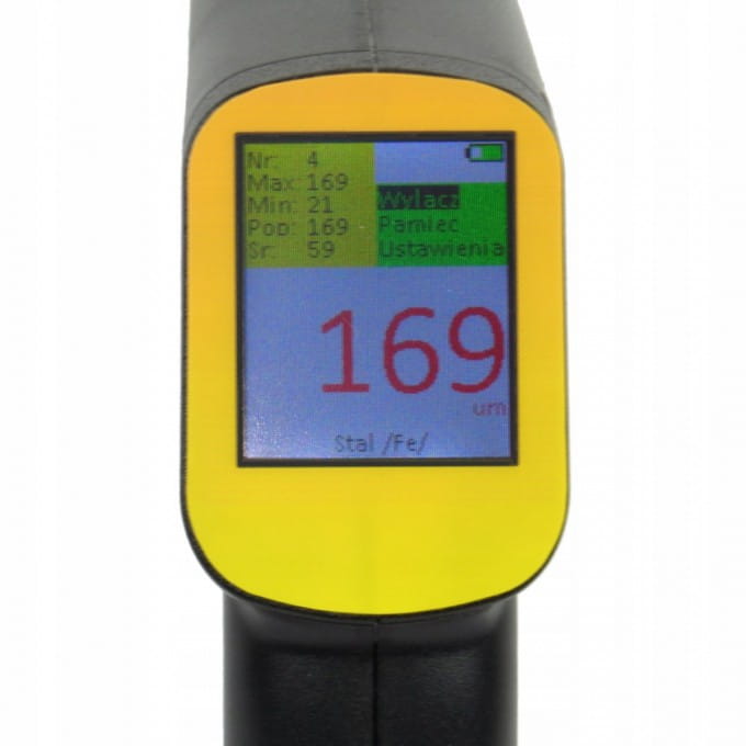 - zestaw kalibracyjny w komplecie (płytka stalowa, płytka aluminiowa, wzorzec grubości)