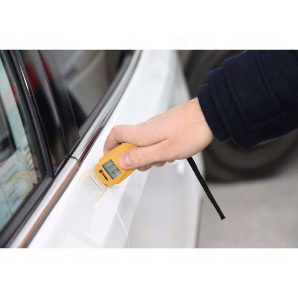 Elektroniczny miernik pozwalający sprawdzić grubość warstwy lakieru na powłokach aluminiowych i stalowych.