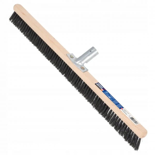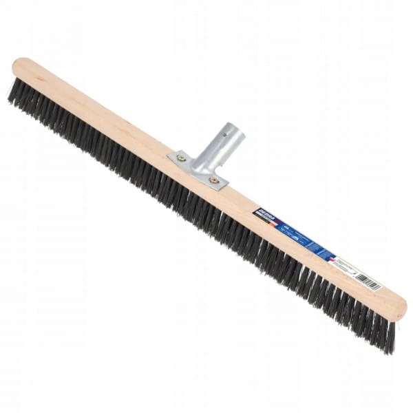 Metalowy uchwyt do mocowania trzonka dodatkowo wzmacnia konstrukcję szczotki, zwiększając stabilność podczas pracy i minimalizując ryzyko wyrwania trzonka przy intensywnym zamiataniu. Włosie wykonano z twardego tworzywa sztucznego, odpornego na ścieranie, co pozwala skutecznie usuwać zabrudzenia nawet z chropowatych i nierównych nawierzchni, takich jak kostka brukowa czy asfalt.