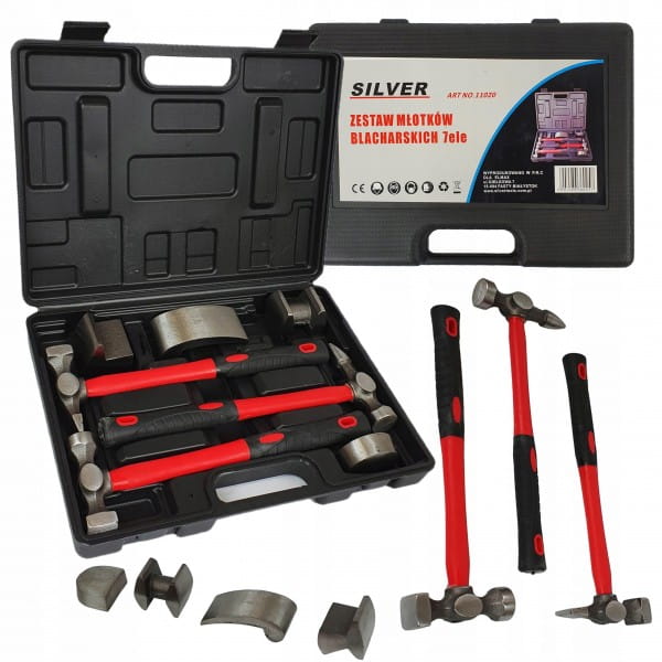 MŁOTEK BLACHARSKI ZESTAW MŁOTKÓW BLACHARSKICH 7EL KOWADŁO WALIZKA DO BLACHY