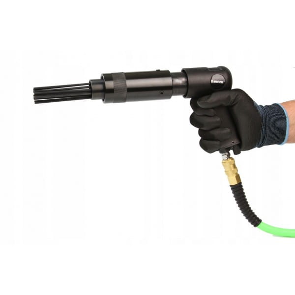 Igłowy młotek pneumatyczny zasilany strumieniem sprężonego powietrza. Przeznaczony do usuwania m.in. zgorzeliny, topnika, kamienia kotłowego, rdzy, farby z elementów konstrukcji stalowych w warsztatach blacharsko-lakierniczych, samochodowych, zakładach produkcyjnych, podczas majsterkowania.