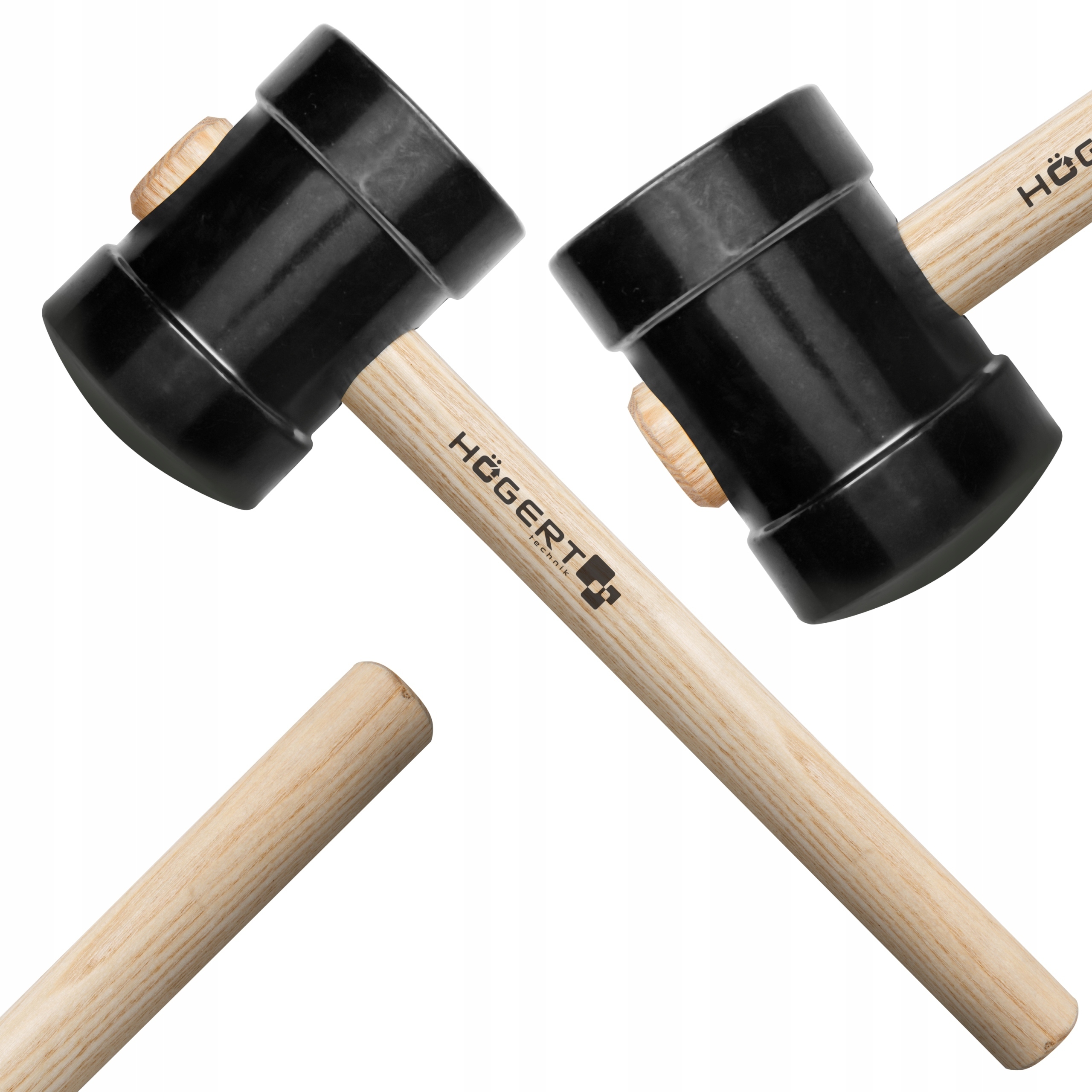 Młotek gumowy z drewnianą rękojeścią przeznaczony do prac brukarskich i kamieniarskich.