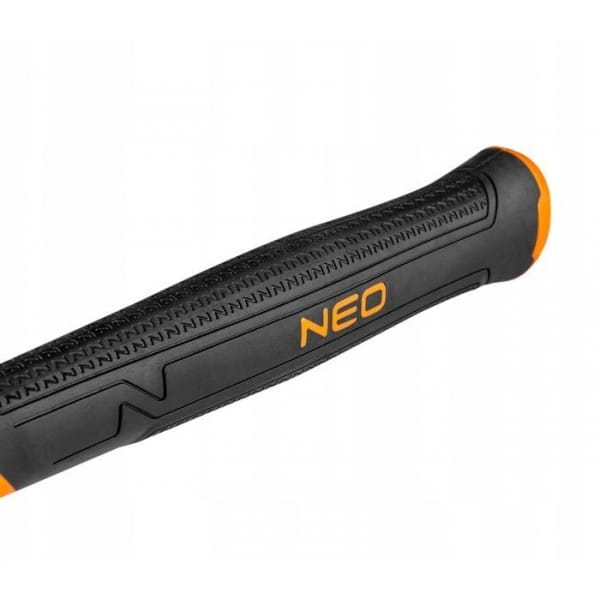Obuch młotka został utwardzony indukcyjnie i oszlifowany maszynowo. Dodatkowo został zabezpieczony warstwą lakieru. Trzonek został wykonany z włókna szklanego, które jest odporne na uszkodzenia, wilgoć oraz zmianę temperatur. Dwumateriałowa rękojeść pokryta jest warstwą antypoślizgową, która wpływa na komfort pracy. Dodatkowo tłumi drgania. Uchwyt został zaprojektowany przez technologów NEO i opatentowany. Certyfikaty GS, TÜV Rheinland oraz wykonanie zgodne z niemiecką normą DIN 1193 są gwarantem niezawodności produktu.