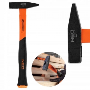 Obuch młotka został utwardzony indukcyjnie i oszlifowany maszynowo. Dodatkowo został zabezpieczony warstwą lakieru. Trzonek został wykonany z włókna szklanego, które jest odporne na uszkodzenia, wilgoć oraz zmianę temperatur. Dwumateriałowa rękojeść pokryta jest warstwą antypoślizgową, która wpływa na komfort pracy. Dodatkowo tłumi drgania. Uchwyt został zaprojektowany przez technologów NEO i opatentowany. Certyfikaty GS, TÜV Rheinland oraz wykonanie zgodne z niemiecką normą DIN 1193 są gwarantem niezawodności produktu.