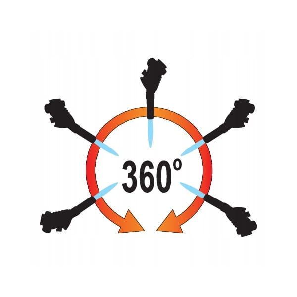 Dzięki specjalnej konstrukcji pozwala na pracę pod kątem 360º. Dzięki temu można go stosować w każdej pozycji.
