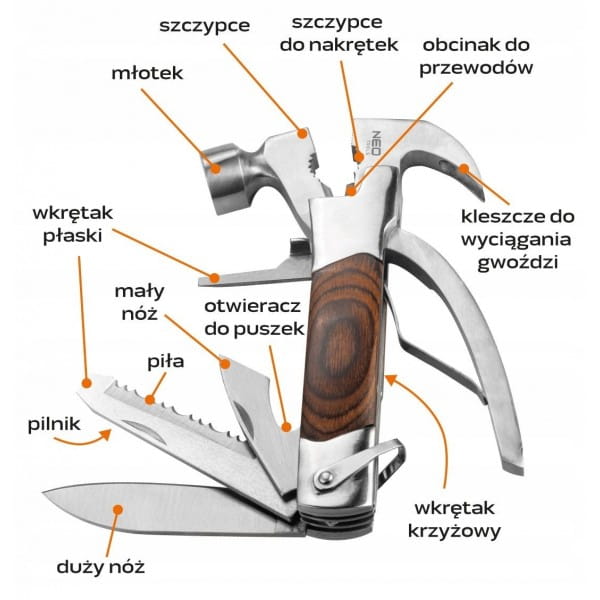 NEO MULTITOOL SCYZORYK NÓŻ MŁOTEK NARZĘDZIE WIELOFUNKCYJNE 13W1 63-113