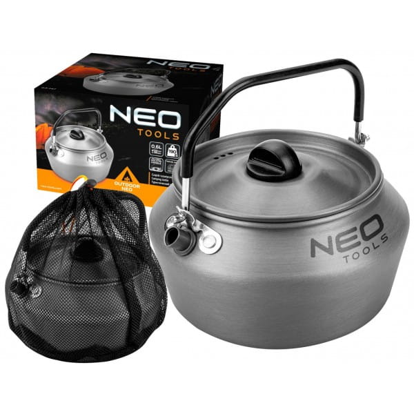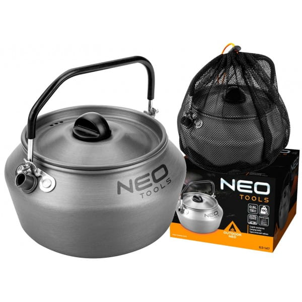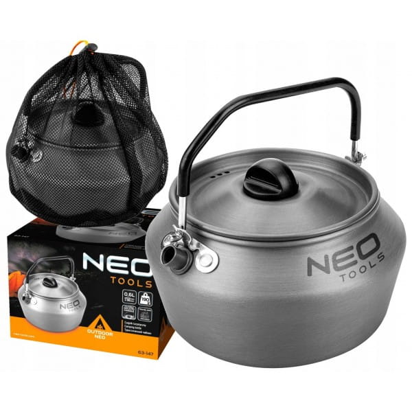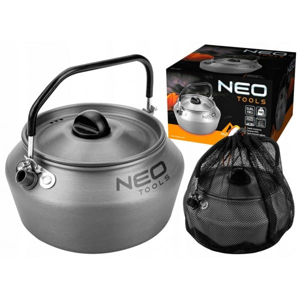 Czajnik turystyczny 0,8 l 63-147 marki NEO o pojemności 0,8 l. Posiada wymiary średnicy 152 mm oraz wysokości 96 mm. Wykonany z aluminium anodyzowanego i stali nierdzewnej jest nie tylko trwały, ale także lekki. Jego waga to zaledwie 190 g. Czajnik wyposażony został w składany uchwyt izolowany oraz pokrywkę z otworami. Umożliwia przygotowanie wody na świeżym powietrzu, bez względu na warunki. Posiada certyfikat dopuszczenia do kontaktu z żywnością LFGB. Oferowany jest w zestawie z wygodną torbą transportową. Marka NEO polecana dla fanów survivalu.