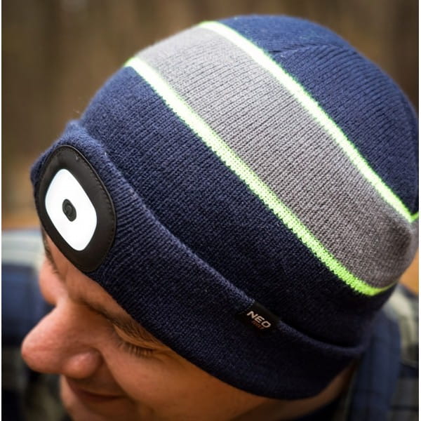 Czapka z latarką LED, granatowo-szaro-zielona PREMIUM, 81-630, NEO