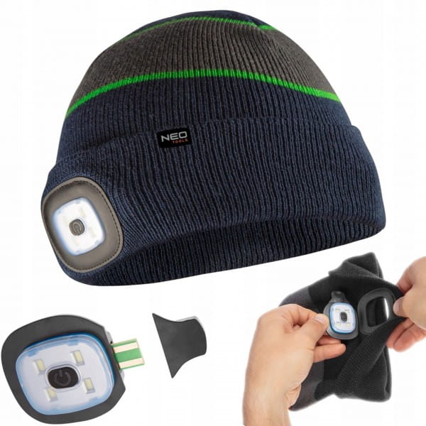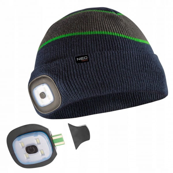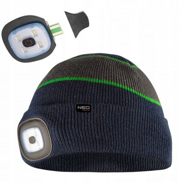 NEO TOOLS CZAPKA ROBOCZA Z LATARKĄ LED CZOŁÓWKA