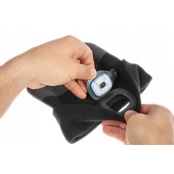 CZAPKA Z LATARKĄ LED, CZARNO-SZARO-POMARAŃCZOWA WARM