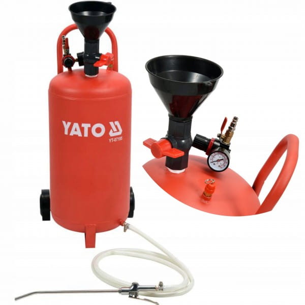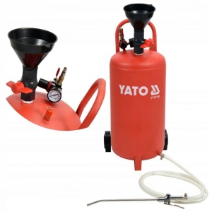 Profesjonalne, pneumatyczne urządzenie marki YATO, przeznaczone do ciśnieniowego napełniania olejem skrzyń biegów (także automatycznych), mostów i miejsc trudno-dostępnych.