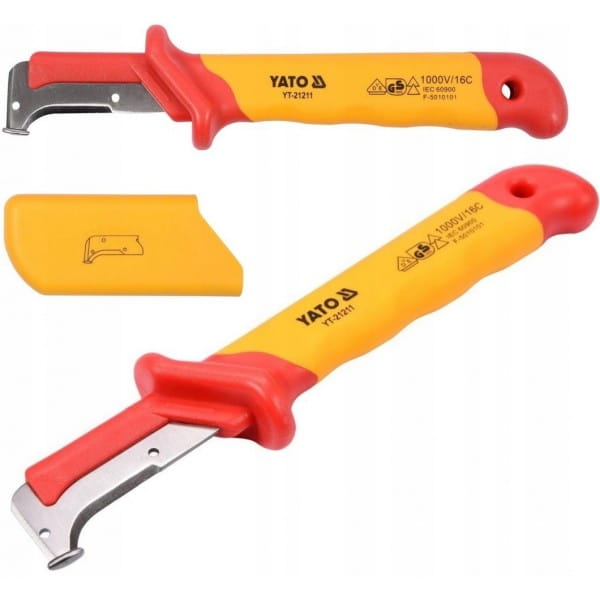 Profesjonalny nóż dla elektryków YT-21211 z izolacją VDE, wykonany z wysokogatunkowej stali CrV.