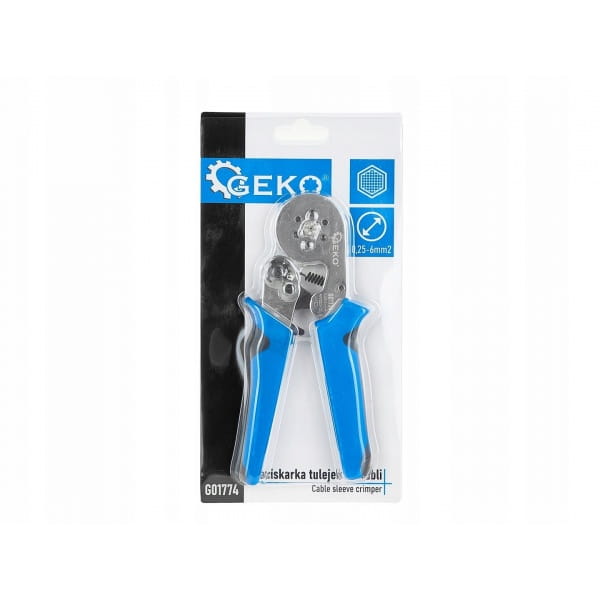 GEKO PRASKA ZACISKARKA TULEJEK KOŃCÓWEK KABLI 0,25-6MM2 SZEŚCIOKĄTNA G01774