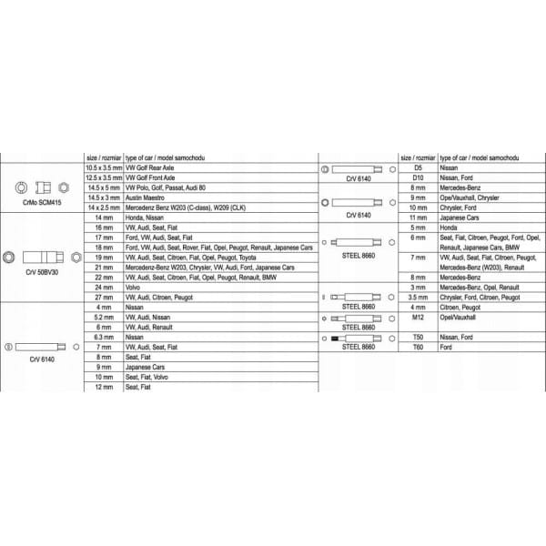 Klucze do mocowania amortyzatorów, kpl. 39 szt.